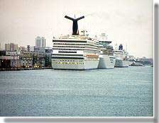 Throughout the night we followed the Carnival Destiny as both ships returned to port in Miami. Susan watched the sunrise as Miami became bigger and bigger. Despite our early arrival, we didn't actually get off the ship until after 10:00 that morning due to various customs clearances, etc. We enjoyed our last meal while on board on the Lido deck and watched all of the passengers dressed in pants, long sleeves, and carrying coats prepared to go back to snow-covered homes. We knew we were lucky to be returning to our weather at home--in the upper 70's. |