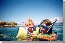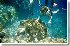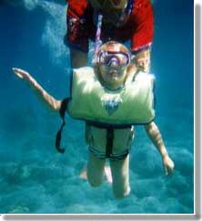 Going even deeper, Captain Z helps Brooklyn touch the corral at the bottom. After Brooklyn, he took Preston down for the same experience. The third rock they touched was more slimy, so Preston didn't want to touch anything else. The water was chilly and both kids got cold after about 20 minutes and wanted to go back to the boat. Captain Z insisted Greg and Susan keep snorkeling and he took the kids back to the boat for snacks. |