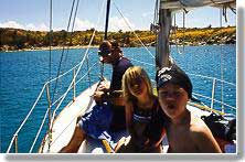 The couple who came on the boat with us, Leonard and Donna, had just retired. They sold their house and had been traveling in a motor home. Leonard retired from the computer industry and Donna had just retired from teaching elementary school. The six of us sat on the deck for the 30 minute trip. Both kids were great and liked the adventure of sailing. Captain Z made sure we knew the names of the islands all around us and taught the kids about the sails and how they worked. |