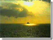 Once back on board, we freshened our mouths from the sea water with crackers and cheese, drinks, and fruit. Before turning the boat around for the trip back to St. Thomas, we get one last look at Buck Island, covered in flowers and with a light house on top of the rocks to the left.