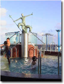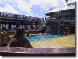 The pools on the Carnival Pride were different than the other ships. Once you got out of the main pool, you were still in six inches of water (shown in yellow). This was Susan's favorite part of the ship. It was kind of like walking along the beach and just getting your feet wet. It was perfect for enjoying the sun while staying cool in the water.