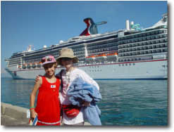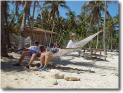 This wonderful, topical island is filled with palm trees and hammocks. Eight years earlier while sailing on the Fantasy we took a picture on one of these hammocks which still appears on one of our very first web sites (don't laugh). Click here to jump over to the picture if you are curious. |