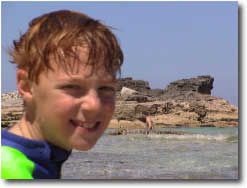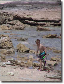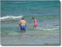 | The water of the Bahamas was just slightly cold in March. After snorkeling for a while, both kids were cold. Luckily their fun didn't stop because they both brought their wet suits that Grandpa had given them a year earlier. |