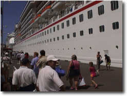 The drive to any of the beaches is a windy drive over the mountain and provides the novice photographer many opportunities to take photographs of the ship. The taxi driver always knows where to stop for the best shots. The island people don't like this and always honk their horn to tell the driver to move on.