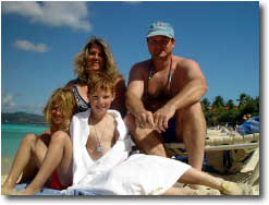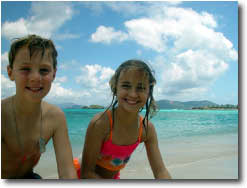 Of course, being in the U.S. gives Greg an opportunity to call the office and make sure everything is alright. The kids are use to this and wait patiently for dad to get off the phone and head for the beach.