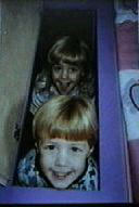 Surprised that we could find them, Preston and Brooklyn try to stay hidden in Brooklyn's new bed's storage bin. Their other favorite hiding places include the clothes dryer, under tables, and behind furniture. |