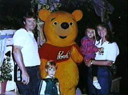 Finally agreeing to let one of the characters get close enough for a good picture, Brooklyn still tries to keep some distance between her and "Pooh". Though it took a 45 minutes wait in line, this picture is the only one she would allow by any of the characters. |
