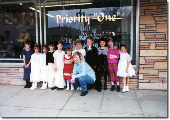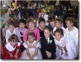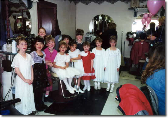 In one of their many cute posses that afternoon, the girls show off their new make-overs. Front left: Analyse, Brooklyn, Preston, Rachel. Back left: Shea, Alysa, Kaylee, Brittany, Janelle, Amanda, Audra. |
