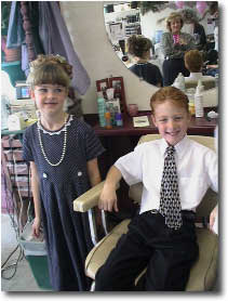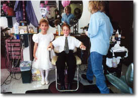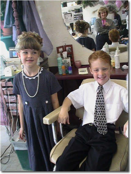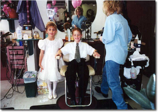 Serving as the perfect gentleman, Preston enjoyed getting his hair done so that he looked his best for the big event. Brooklyn joins him for a great "after" shot. |