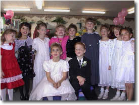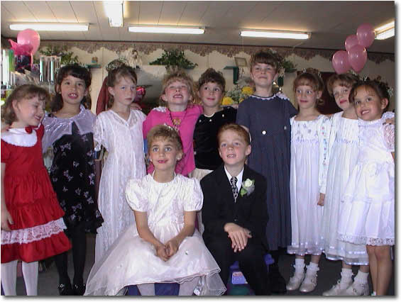 Girls with attitude! From left: Analyse, Alysa, Shea, Kaylee, Brittany, Janelle, Amanda, Audra, Rachel. In front, the birthday girl, Brooklyn, with brother Preston. |