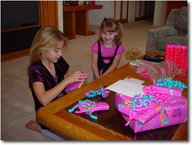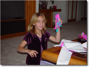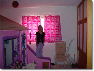 Adding a wonderful pink tint to her already pink room, Brooklyn loved the Barbie curtains from mom and dad. For years mom had been searching for Barbie material to have curtains made. A month before Brooklyn's birthday, Wal-mart came through with spools of Barbie material!! Thanks to good friend and neighbor Sue Ellen (Analyse's mom), Brooklyn got her long-awaited Barbie curtains to add the perfect touch to her bedroom.