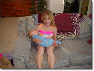All Brooklyn wanted for her birthday was a real live baby sister. While mom and dad couldn't accommodate that request, Brooklyn was able to hold a real live baby boy, Sue Ellen's first grandson, on her birthday. |
