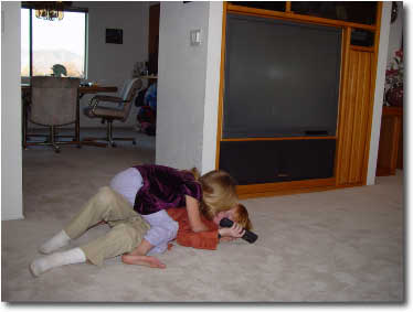 Most excited about the gift from Preston, Brookyn jumps up to give her brother a kiss, but has to tackle him first. |