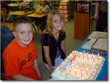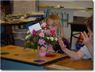 After returning from library time, Brooklyn was excited to see a bouquet of flowers waiting for her on the Birthday Desk. She was sure mom and dad had sent them, but much to her surprise, when she read the card she discovered they were from Sparkles--oh, yea, and from grandpa and grandma Seal. The best part was they came in a Barbie mug.