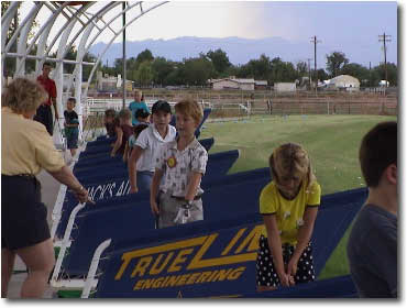 Randy and Jeanelle get help from Tommy learning to use the proper grip to swing the golf club. |